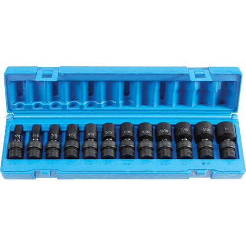 Featuring 12 semi-deep universal sockets ranging from 5/16″ to 1″, this set provides the ideal balance of reach and compact size — delivering exceptional access in tight or angled spaces where standard sockets fall short. Each socket is equipped with a re-designed chamfered drive, enabling smooth and secure attachment to power tool anvils while protecting them from wear and damage. The universal joint design offers flexible movement, ensuring improved mobility and consistent torque delivery even in hard-to-reach areas.