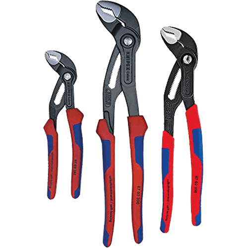 • The KNIPEX Cobra¬Æ Water Pump Pliers are the perfect gripping pliers for every application. The Cobra Pliers will grip any shaped object – round, square, hex or flat with a bite like no other pliers. This set offers three of the most popular sizes with multi-component handles for applications up to 2 3/4"