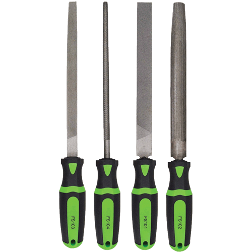 Crafted from high-quality, heat-treated steel, these files are built for durability and long-term use in the toughest workshop environments. The four-piece collection is curated to provide maximum versatility, likely including a combination of essential shapes such as a flat bastard file, round bastard file, half-round bastard file, and triangle bastard file to cover flat surfaces, concave curves, convex curves, and internal corners.