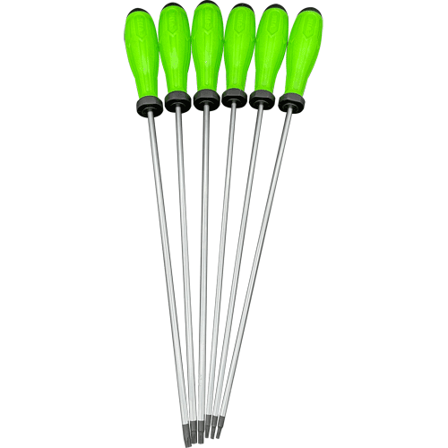 Perfect for automotive repair, industrial maintenance, mechanical service, and equipment assembly, the 6 Pc. TORX XL Screwdriver Set provides the reach and precision required for professional-level work.