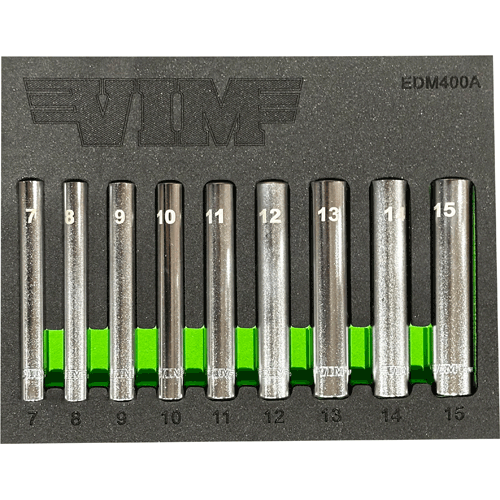 9 Pc. 1/4″Extra Deep 6 Pt. Metric Socket Set (7-15mm)
