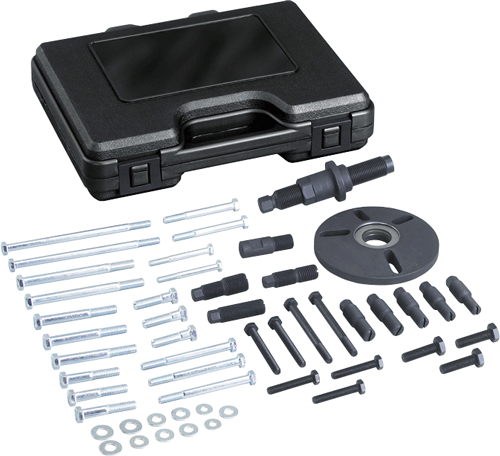 - A bearing-centered circular 2/3-way and an assortment of metric and fractional bolts and adapters provide wide coverage.