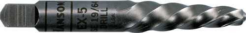 - Extractor size and recommended drill bit size are etched on each tool.